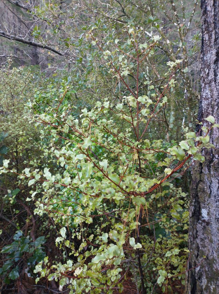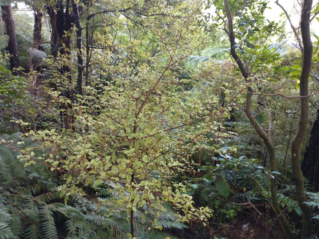 - an endemic shrub growing up to 6m tall, they are very obvious because of their young reddish-brown stems that bear pale green leaves that have a leathery texture and wavy edges