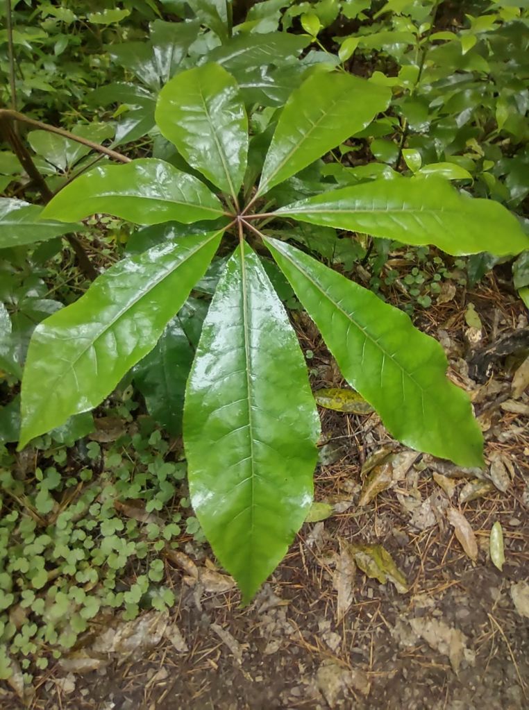 However, patē, Schefflera digitata leaves are soft and thinner, not as glossy, with very fine serrations at the edge.