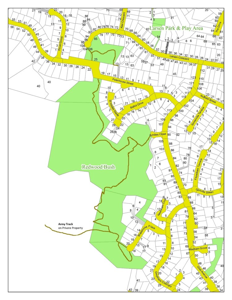 This is a reserve dating back to when the Redwood subdivision was created in the 1960s. The terrain of the reserve is approximately one hectare and as it is steep in part, was considered unsuitable for housing. Hence it remains a remnant of the original bush that covered this area.