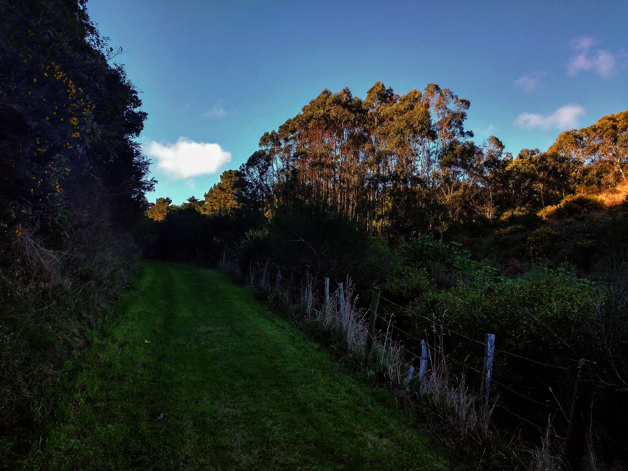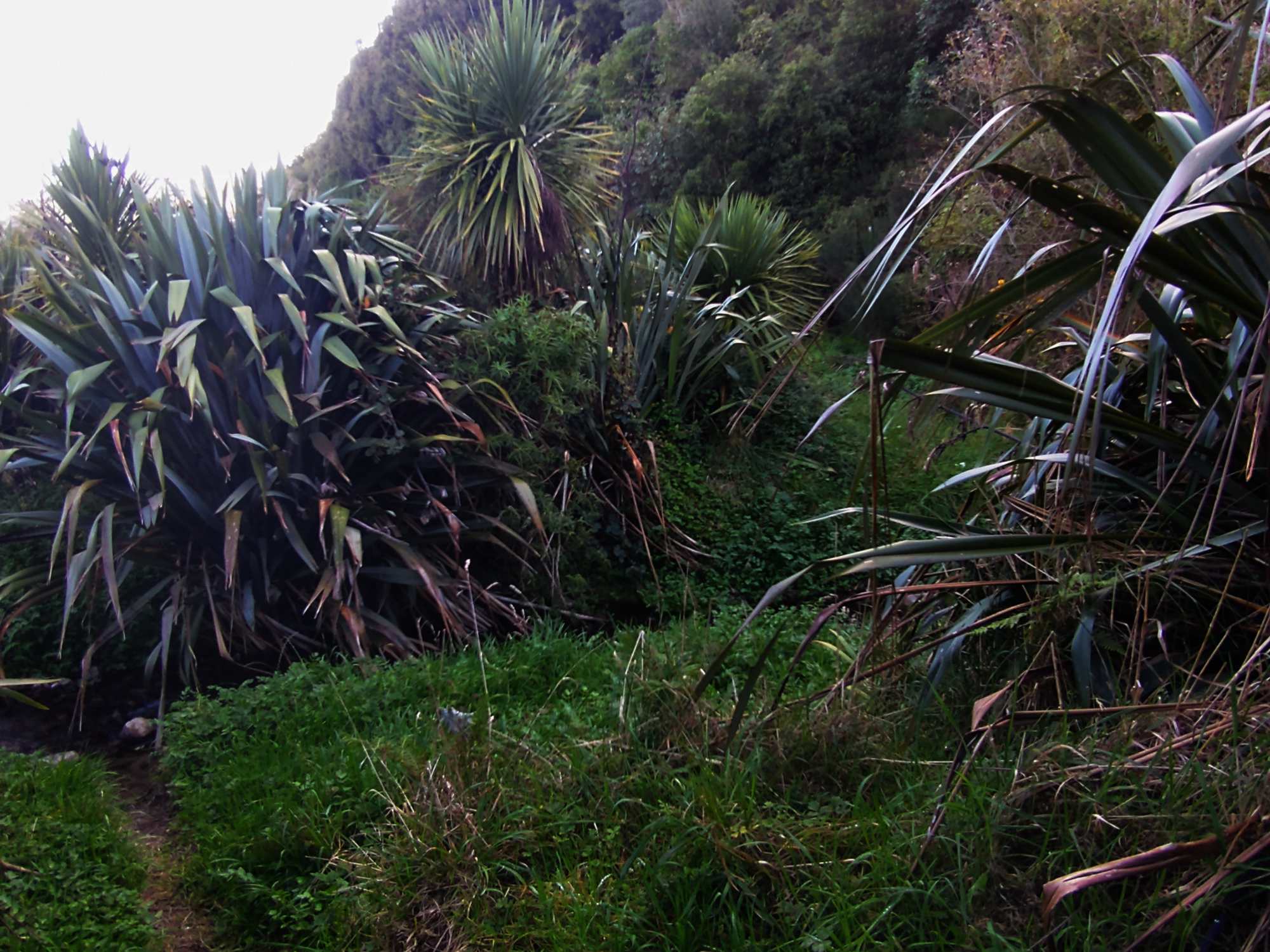 There is a mix of introduced and native trees including pine, wheki, rangiora, and the ever present gorse and blackberry. At the south end, mature tawa and rewarewa are present and a large northern rata.