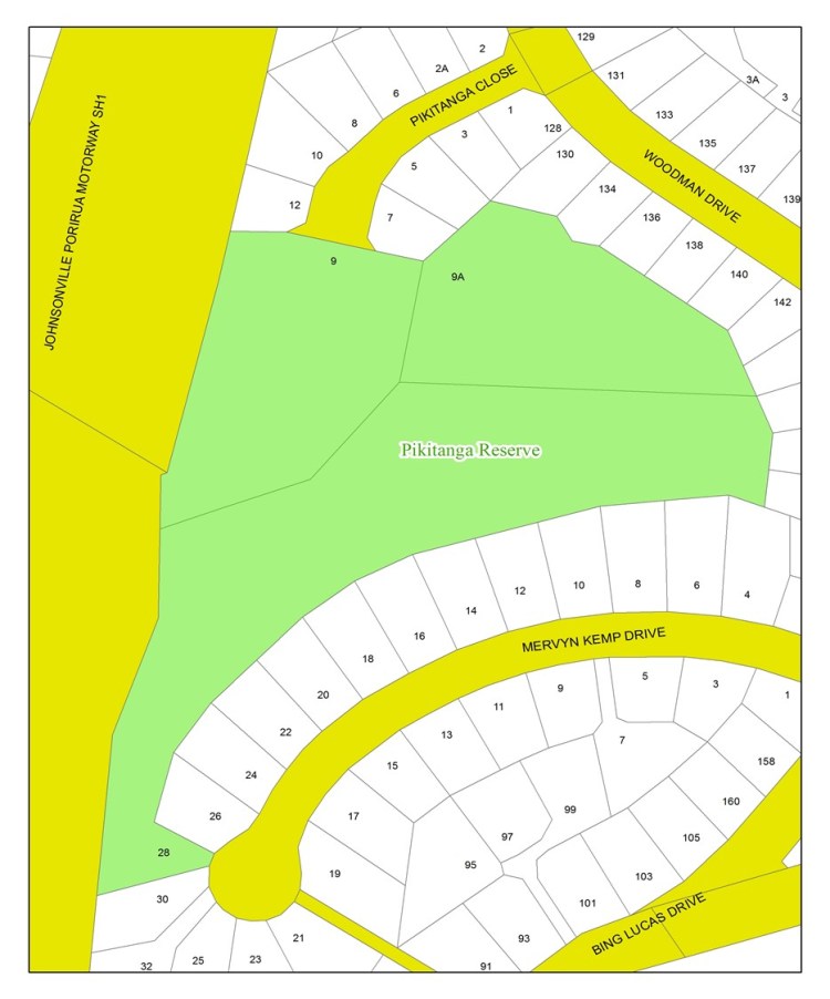 9 Pikitanga Close, Tawa, Legal Description: LOT 1 DP 81513. Area 0.7275 Ha. Designated a Local Park and as Recreational Reserve and Open Space B.