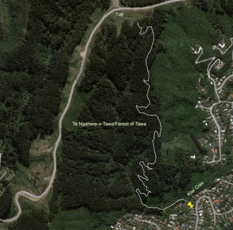 None of Tawa as all of the track is within the bush.