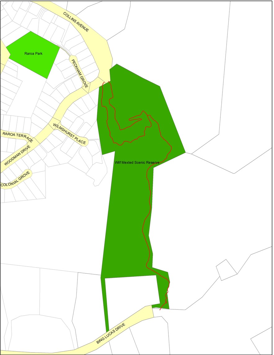 The original land of 1.6ha was donated for a scenic reserve in 1939 by Wilf Mexted, a descendent of an early settler who farmed in Tawa and was a great lover of trees. Wilf’s foresight recognised the significance of retaining what little remained of the original forest cover, as much of the valley had been cleared for pasture by the late nineteenth century. Near the foot of Mt Robert, off Woodman Drive this small part of the original bush was preserved. In the early 1970s, a further 2.4ha including an access way to Bing Lucas Drive was added to the reserve which was a contribution from the developer, John Walsh.