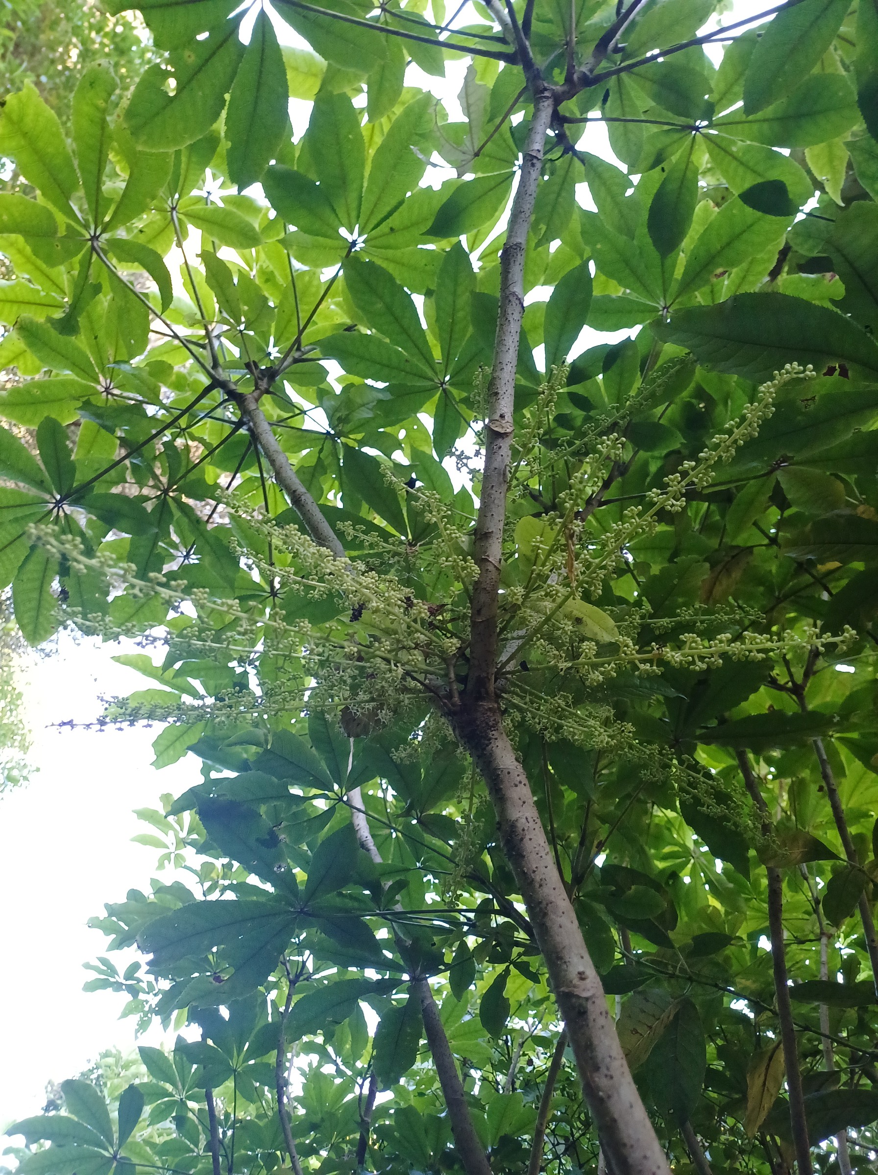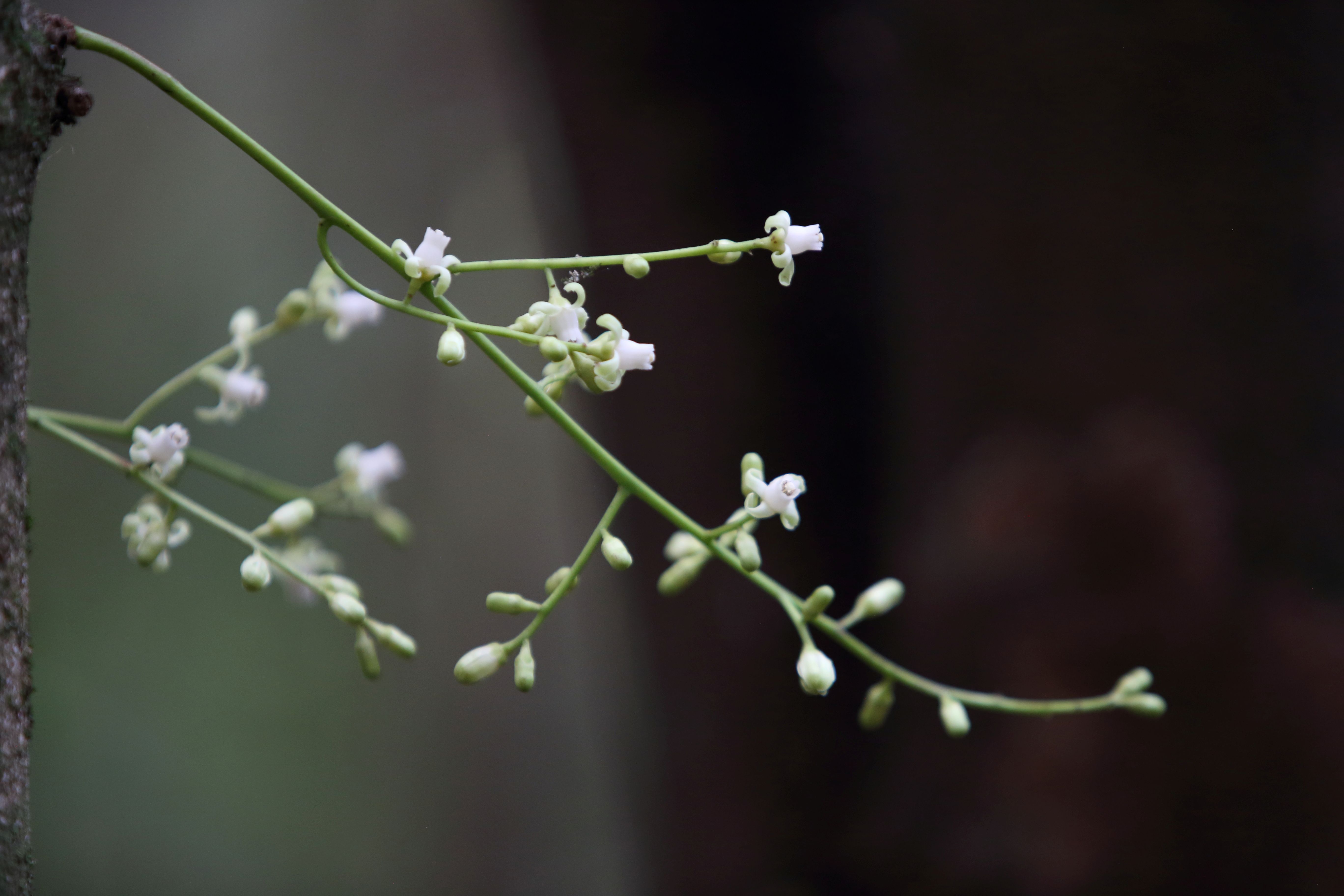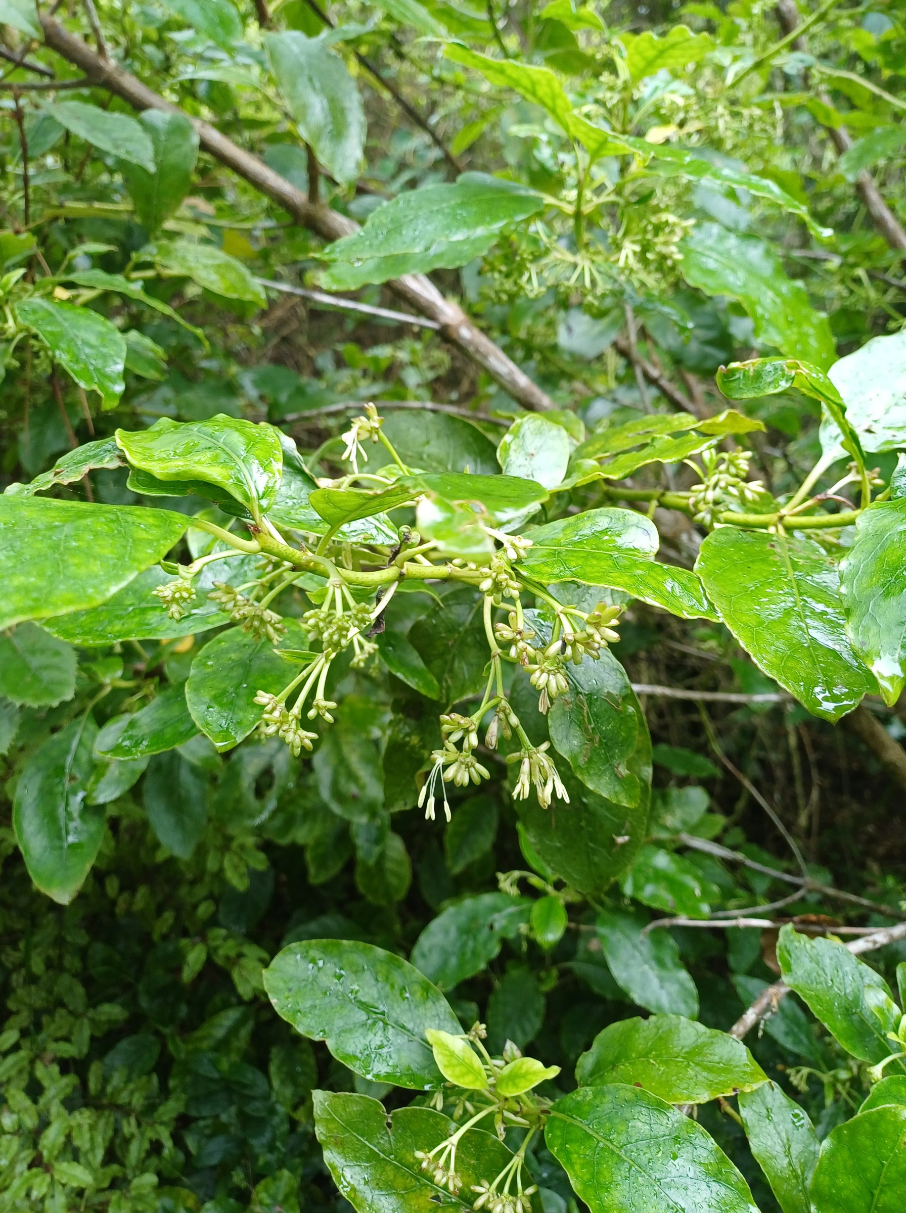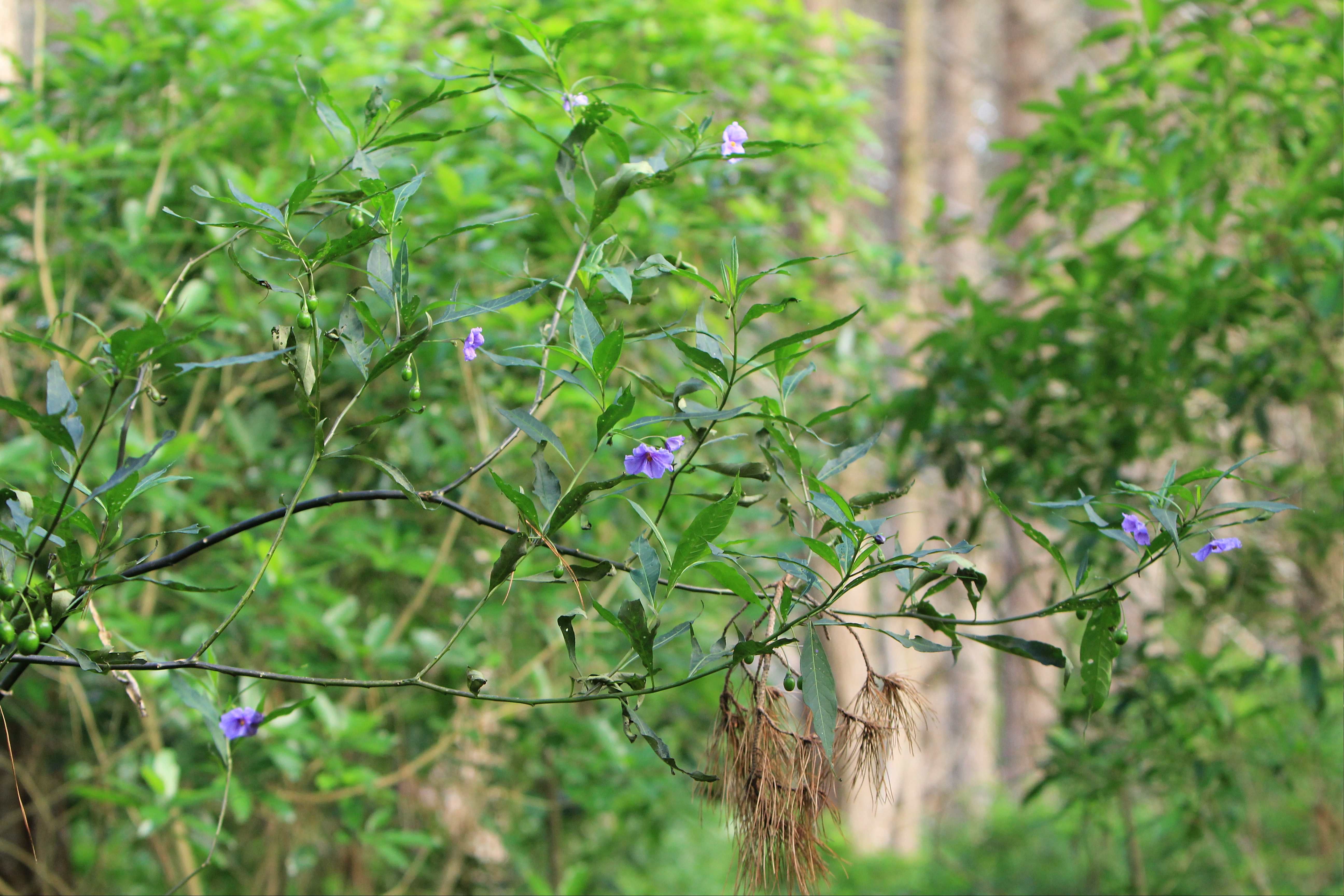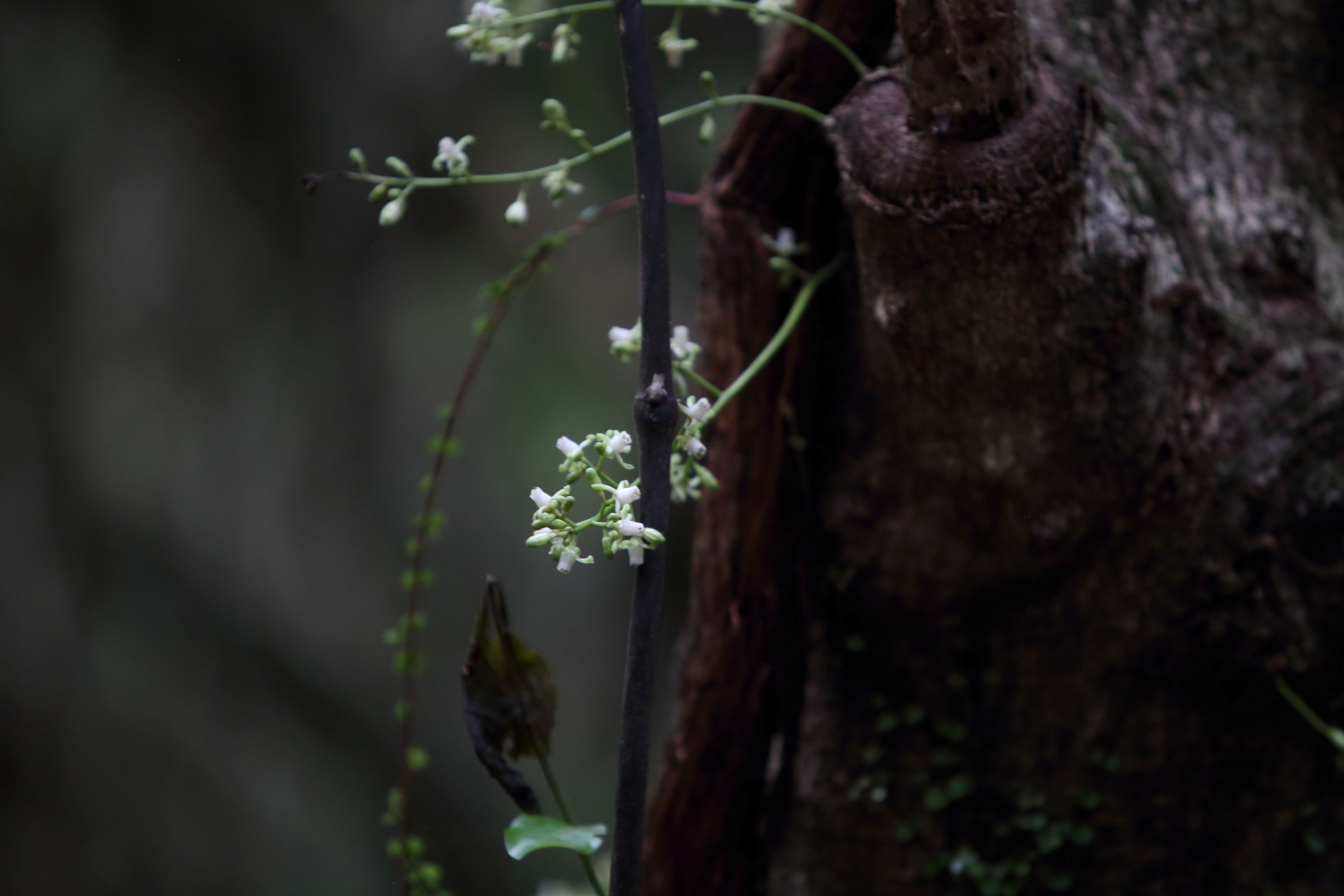 Mahoe is prominent in the low canopy layer. In this layer are also young northern rata, totara, matai, rimu, puriri, tawa and hinau. At the lower levels are developing nikau, titoki, with lacebark, karo, and mapou. The shrub layer is mainly kawakawa, makomako, karamu, kanono, tarata, hangehange, hebes, and whauwhaupaku. There are also some exotic trees at the beginning of the track that are reputed to date back to early plantings by Charles Duncan.