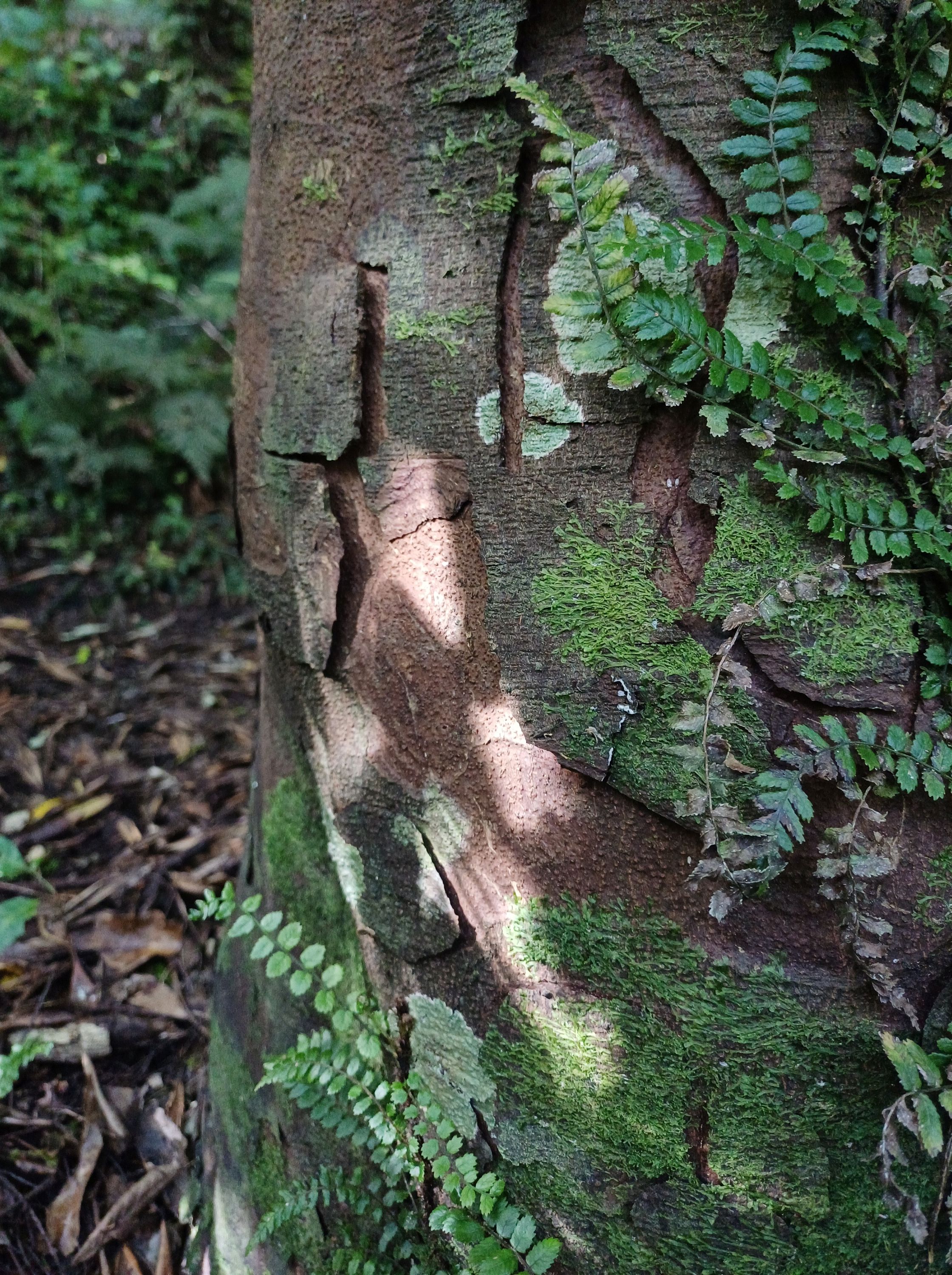 There is a varied but good selection of native trees. Canopy trees include mahoe, kohekohe, rewarewa, tawa, and rata. The understory mainly includes ground ferns, rangiora, kanono, and hangehange.